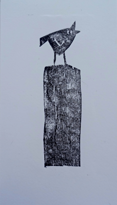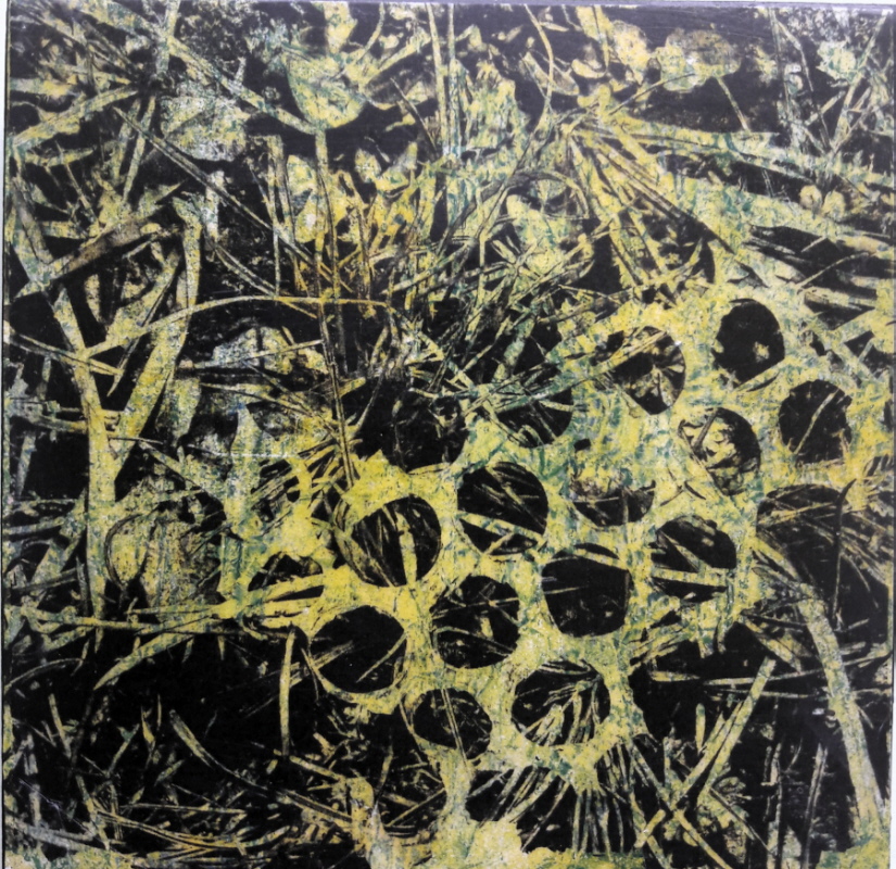 10 x10 cm, Linoldruck auf Collage